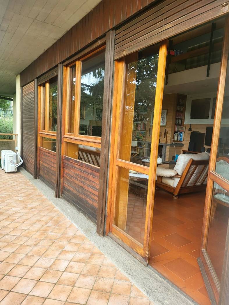 Il piano sottostante di 95 mq, con un accesso indipendente, offre la possibilità di creare un appartamento separato o uno studio, rendendo questa villa ancora più versatile. Immersa in un parco esterno con giardino, gli alberi d'alto fusto creano un'atmosfera incantevole e rilassante. Non dimenticare il box doppio di circa 30 mq e la cantina, perfetti per riporre tutto ciò di cui hai bisogno.